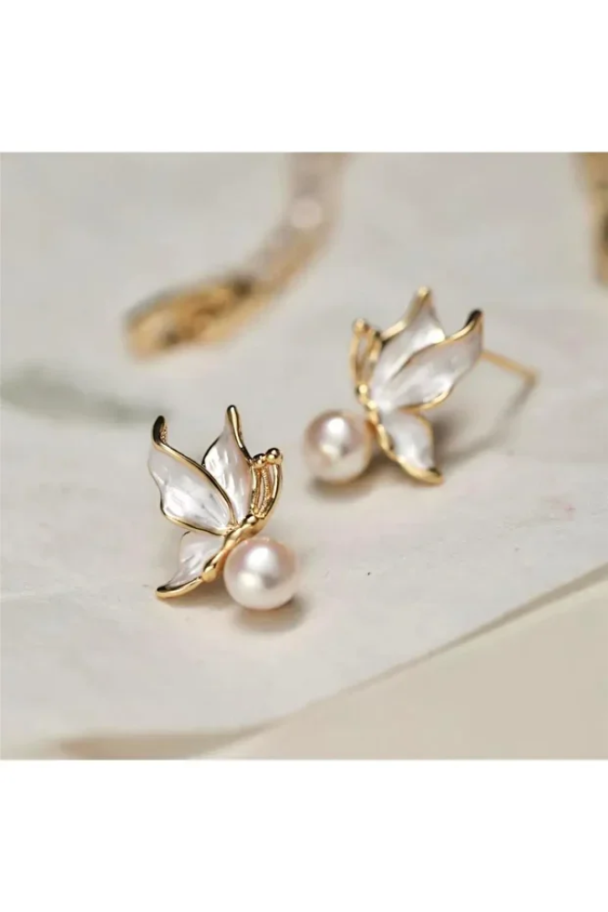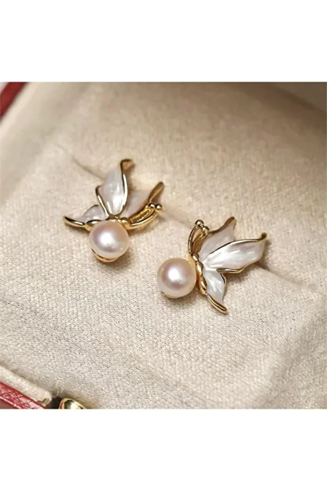 - حلق اللؤلؤ تصميم فراشة صغير يعكس الأنوثة والرقة الفائقة